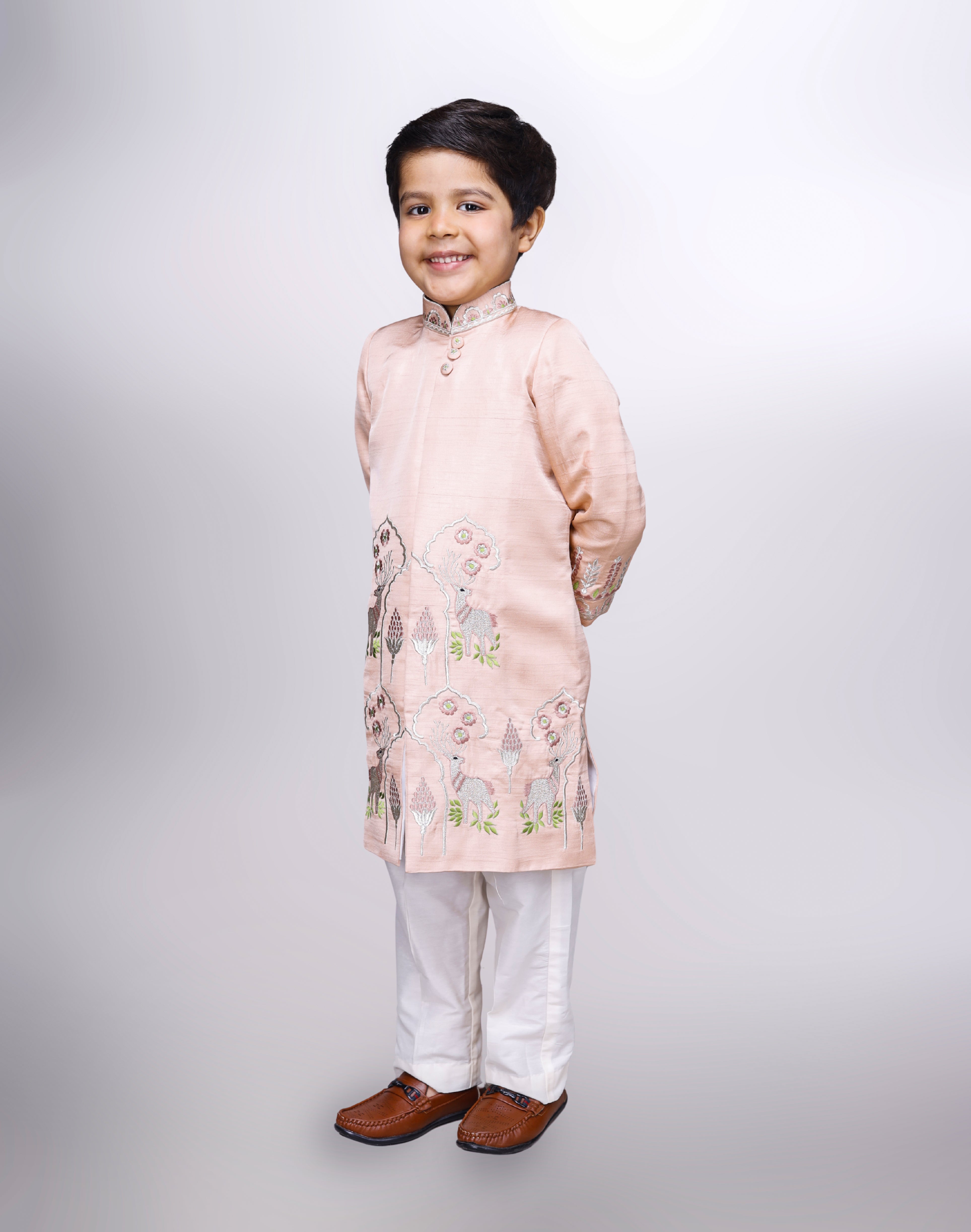 Embellishment : Zari and thread embroidered deer in a palace garden