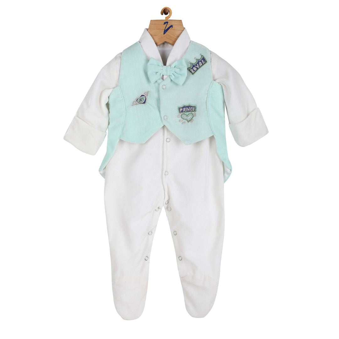 Mint and white romper with tail waistcoat